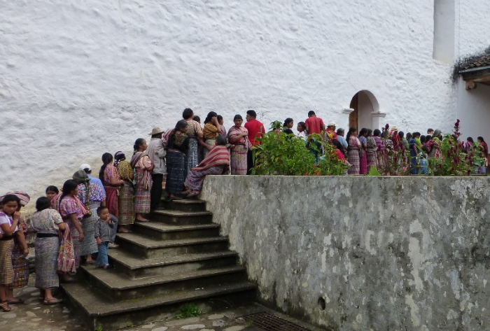 Sandy provides ear acupuncture in a busy clinic in Santiago Atitlan.