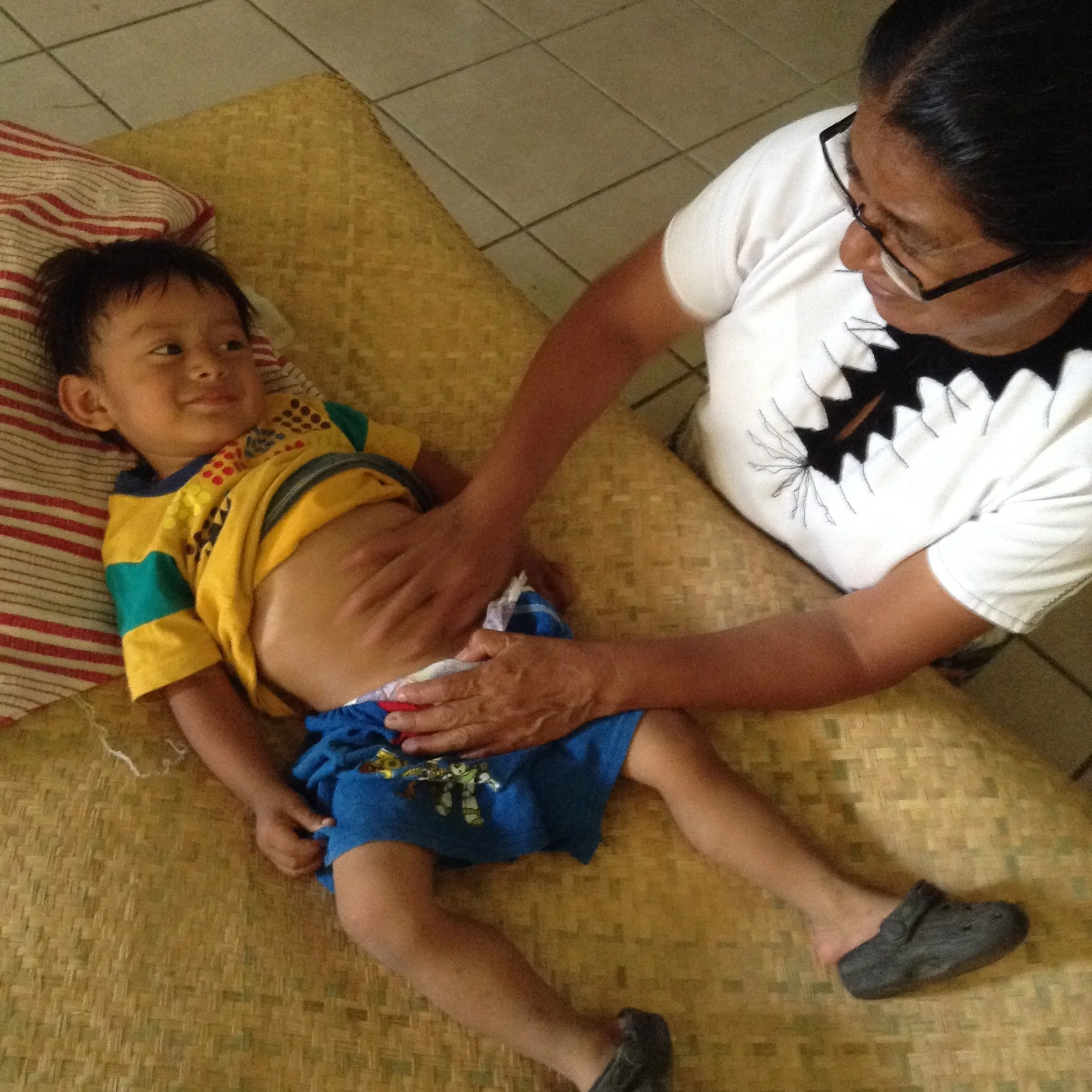 Hermana Marucca give a stomach massage to patient in the Basurera - Guatemala City