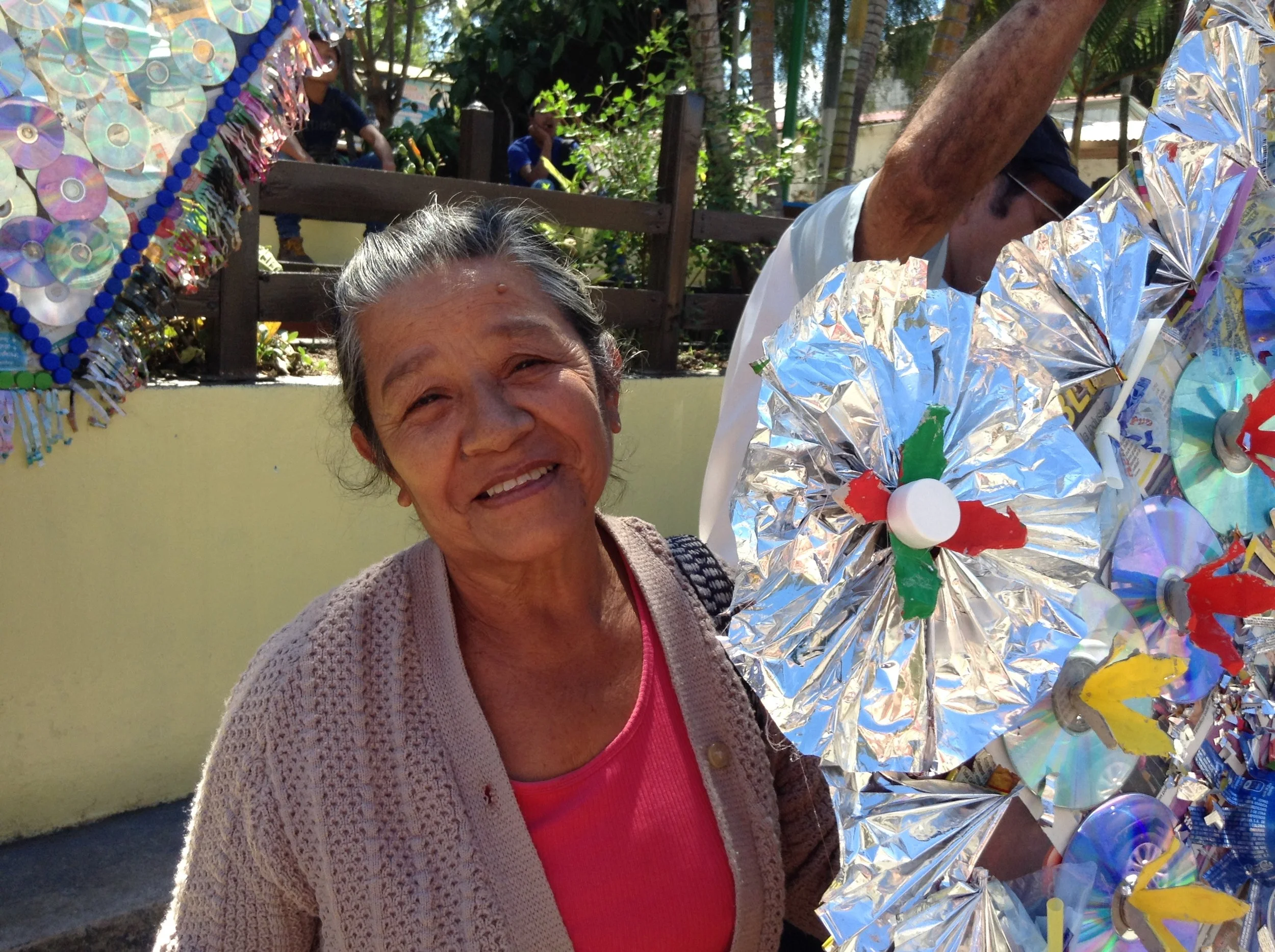 Elida Abandano of SOSEP - Anos Dorado enjoys recycled kite exhibit in Panajachel