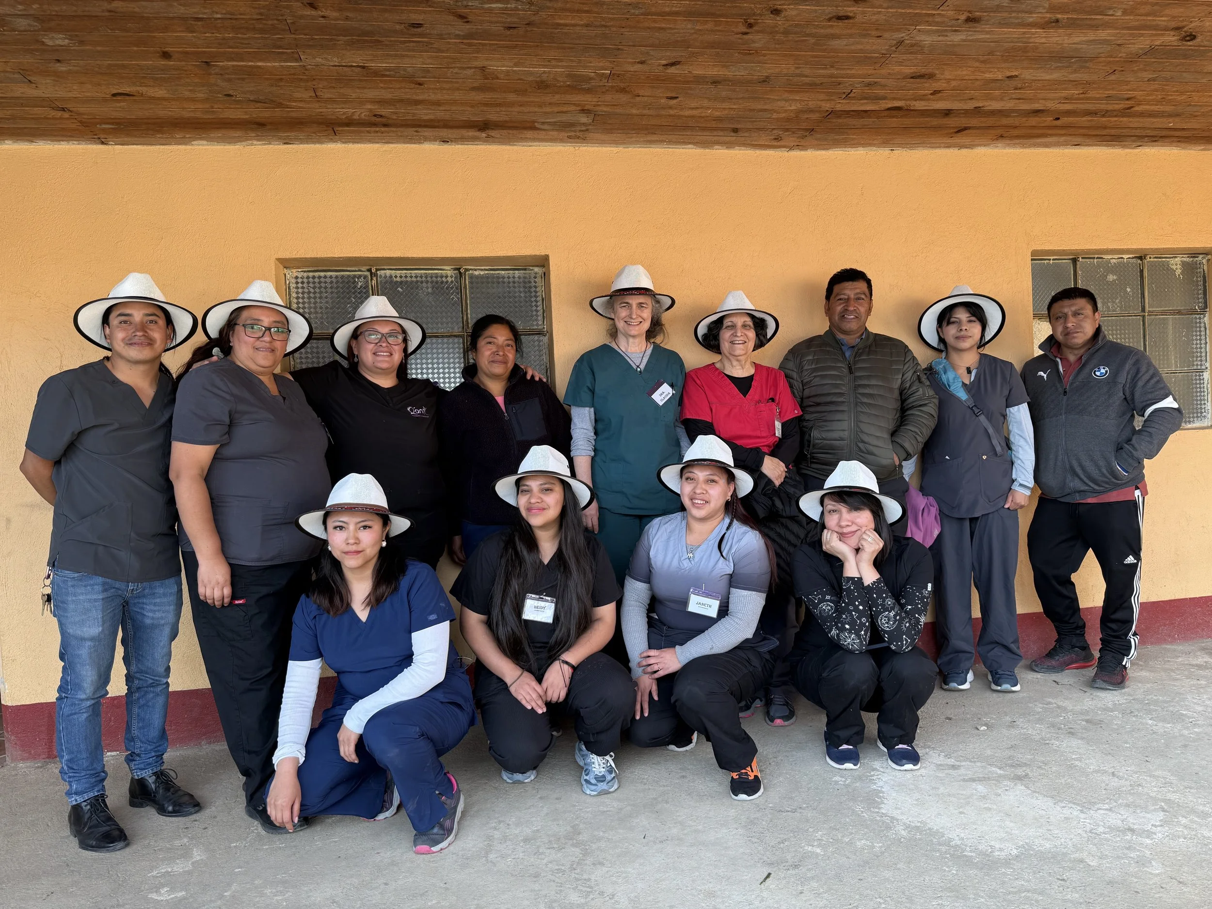 US based Joan Boccino and Claudia Citkovitz with locally trained acupuncturists at their first jornada in Chiyax, March 2025